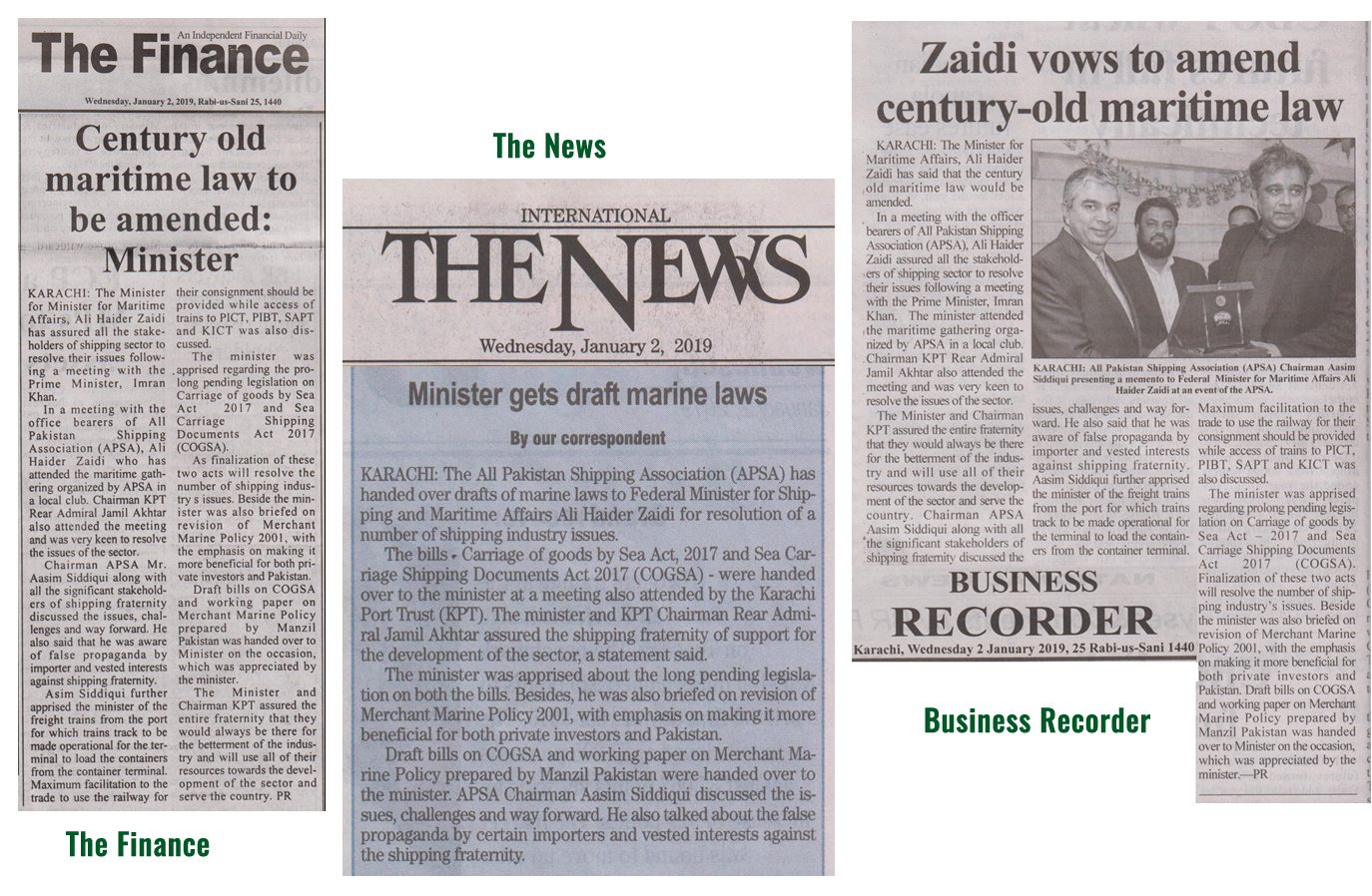 In a maritime industry get-together organized on Wednesday, 26 December, 2018 by All Pakistan Shipping Association (APSA), Manzil Pakistan’s team apprised Federal Minister of Port and Shipping Mr. Ali Haider Zaidi about necessity of revision in maritime laws to bring them in line with modern business & technological requirements, while providing draft bills on Carriage of Goods by Sea-2018, Sea Carriage Shipping Documents-2018 the Minister was informed that the piece of pending draft legislation will not only resolve the pending issues but will also facilitate the shipping industry subsequently. The Minister was also briefed on the need of revision on Pakistan Merchant Marine Policy-2001, and was provided a working paper which covers the analysis of current policy with incentive oriented recommendations mainly focused to enhance private sector investment in shipping sector with a goal to improve Pakistan’s economy. |