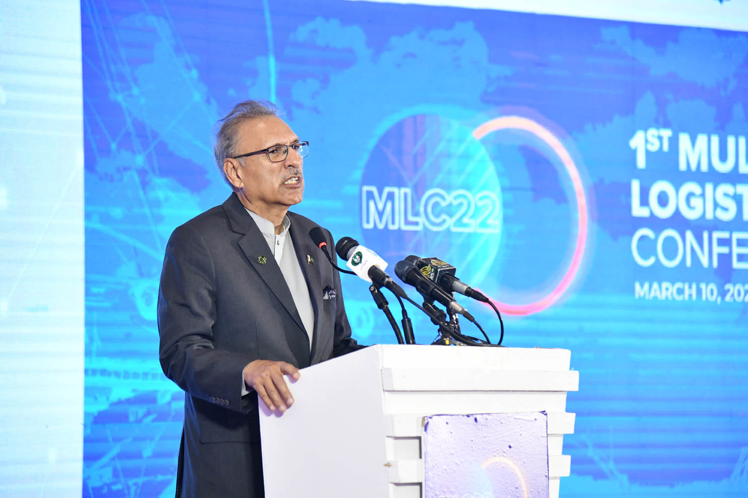 The President of Pakistan, His Excellency Mr. Arif Alvi bestowed the honor of inaugurating the conference and said a few valuable words. His excellency thanked and congratulated the research think tank on organizing such an immensely successful conference that was the need of the time. His Excellency appreciated the efforts of organizers for also planning post-conference follow up sessions on each mode of transport and run a roadshow with various chambers and associations across Pakistan to support the industry in reaching solutions for the challenges of this industry. The stage was then left for Mr. Aasim Azim Siddiqui, Vice Chairman, Manzil Pakistan, who warmly welcomed all the participants and shed light on the past endeavors of the research think tank along with the proud collaborations with government ministries. He highlighted the importance of the conference and expressed his belief that it is an important opportunity for all stakeholders to come forward and highlight the significance of their projects along with the hurdles they confronted during such projects with suggested solutions.
